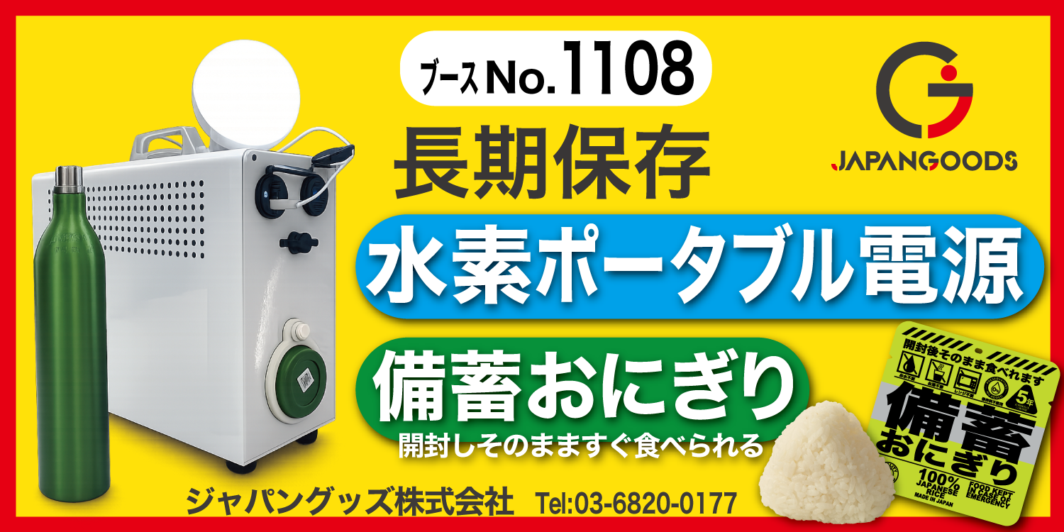 今回の防災展では、最新のクリーンエネルギー技術を活用した[NEW] 水素ポータブル電源と[NEW] 水素ガスコンロをはじめ、災害備蓄の利便性と環境に配慮したアイテムを展示いたします。